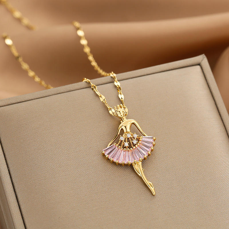 สร้อยคอแฟชั่นสแตนเลสสตีลชุบทองแบบขายส่ง สร้อยคอประดับเพชรคิวบิกเซอร์โคเนียกันน้ำ สร้อยคอเทรนด์แฟชั่นสำหรับผู้หญิง