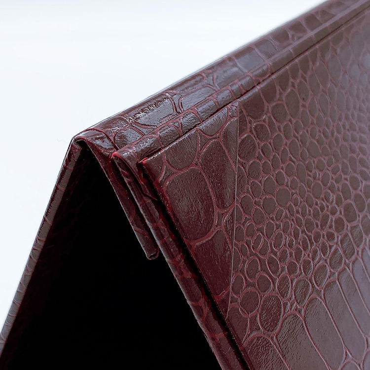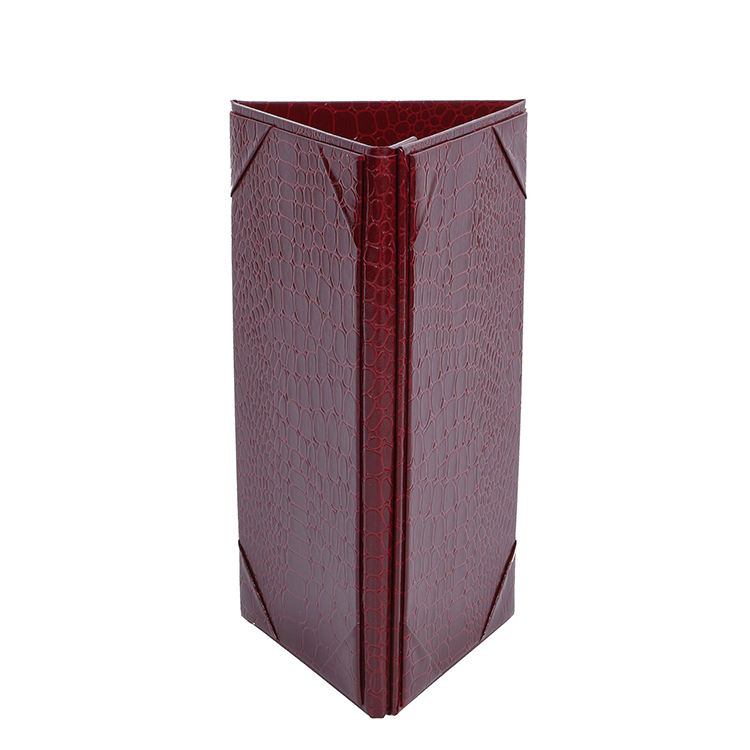 ขาตั้งเมนูแบบสามพับหนังเทียมสั่งทำขายส่ง หมุนได้ 3 ด้าน รูปทรงสามเหลี่ยม สำหรับร้านอาหาร