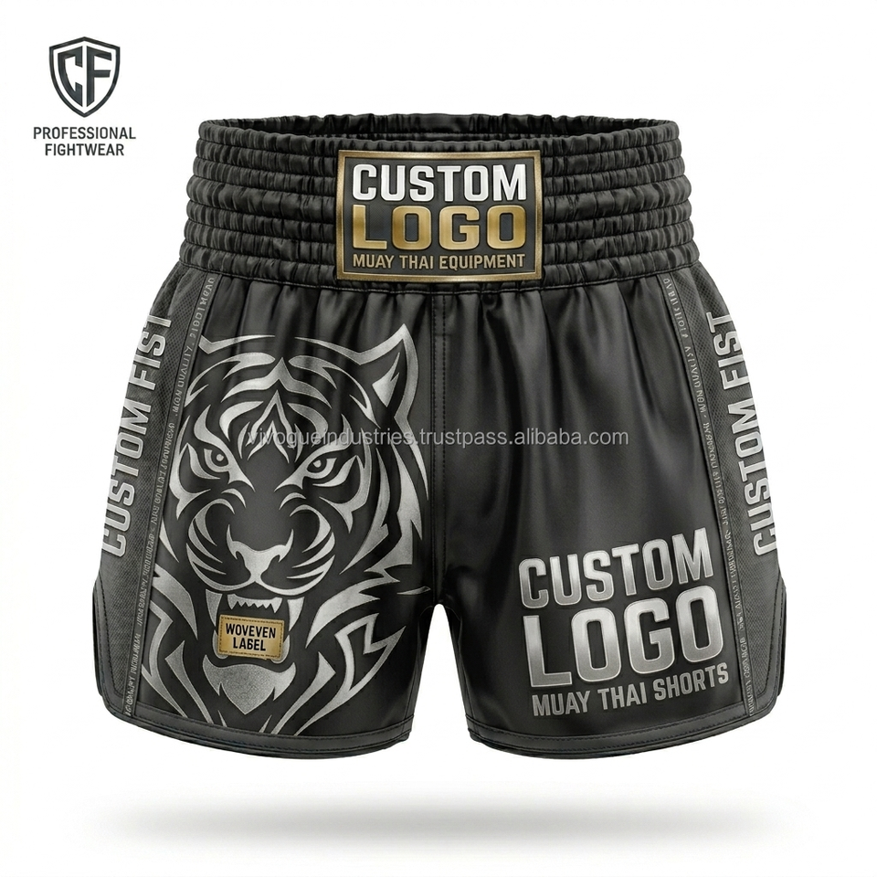 กางเกงชกมวยสั่งทำขายส่งพร้อมโลโก้ กางเกงมวยไทยผ้าซาตินพรีเมียมสำหรับผู้ชาย ชุดคิกบ็อกซิ่ง OEM