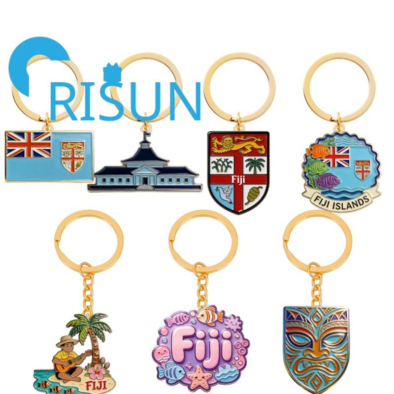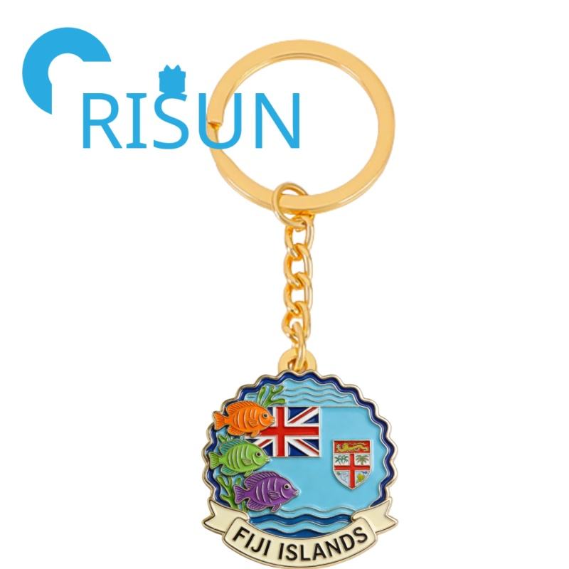พวงกุญแจโลหะแบบสั่งทำขายส่ง ของที่ระลึกการท่องเที่ยวหมู่เกาะฟิจิ ลายธงชาติฟิจิ ปลาทิกิ ซูวา ฟิจิ