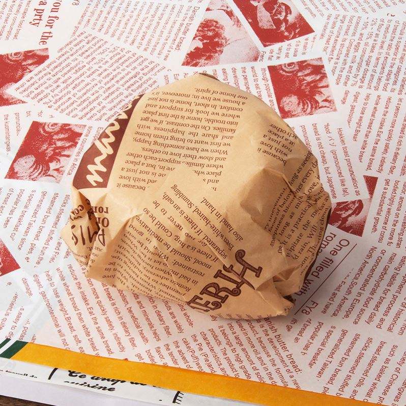 กระดาษห่ออาหารกันน้ำมันแบบขายส่ง กระดาษห่อแซนวิชแบบใช้แล้วทิ้ง กระดาษห่อแฮมเบอร์เกอร์