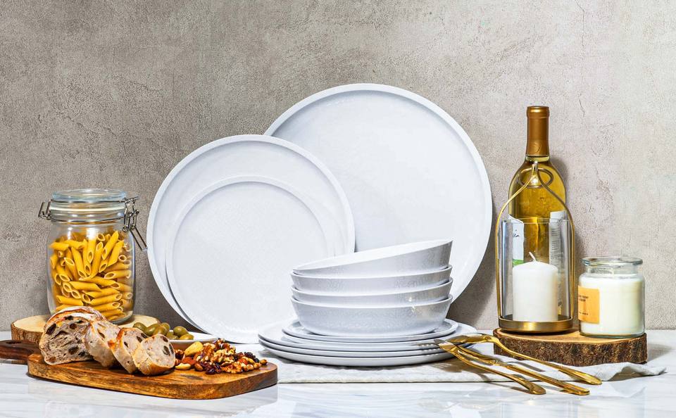 ชุดจานชามเมลามีน12ชิ้นสำหรับอาหารค่ำชุดจานเกรดอาหารออกแบบได้ตามต้องการ