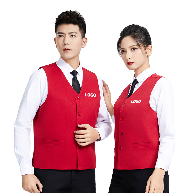 เสื้อกั๊กกันรอยยับกันการเกิดรอยยับป้องกันการหดตัวมีกระเป๋าสำหรับพนักงานโรงแรมซูเปอร์มาร์เก็ตออกแบบได้ตามต้องการ