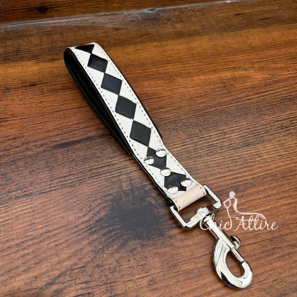 Genuine Leather Black & White Checks Design