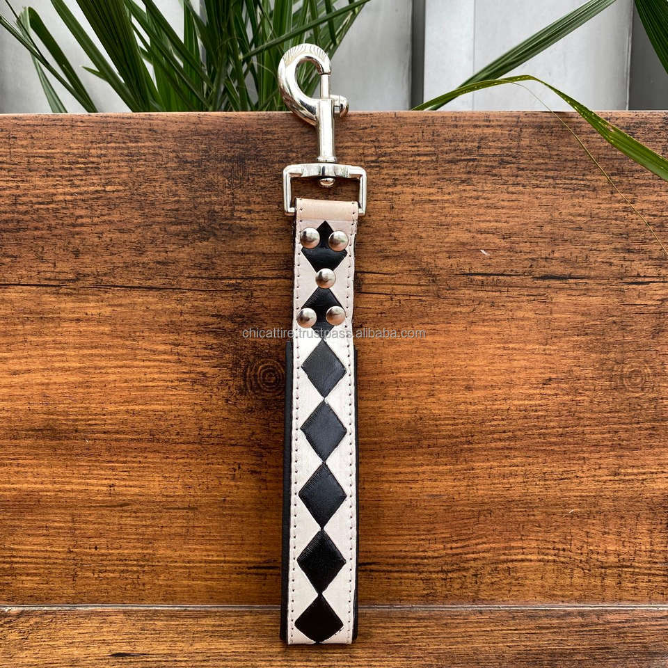 สายจูงสุนัขหนังแท้ลายตารางหมากรุกแท้ออกแบบได้ตามต้องการสายจูงฝึกและควบคุมด้ามจับแบบนุ่มส่วนบุคคล