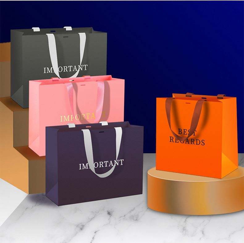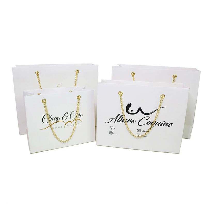 ถุงกระดาษอาร์ตเคลือบทองคำแบบกำหนดเองสำหรับขายส่ง บรรจุภัณฑ์กระดาษแข็งสำหรับชุดชั้นใน เสื้อผ้า รองเท้า และสินค้าอื่นๆ พร้อมโลโก้ของคุณเอง