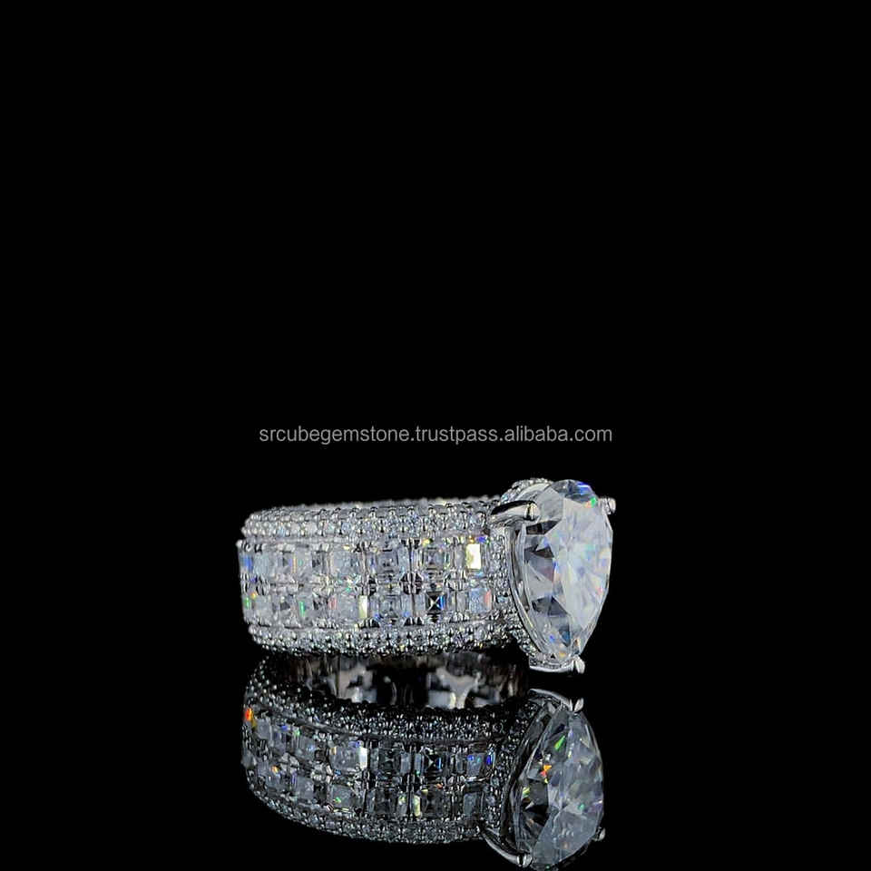 แหวนหมั้นฮิปฮอปเงินแท้ 925 ชุบทองคำขาวสั่งทำขายส่ง ประดับเพชรทรงหยดน้ำและทรงเหลี่ยม DEF VVS ของขวัญแต่งงาน