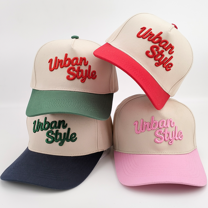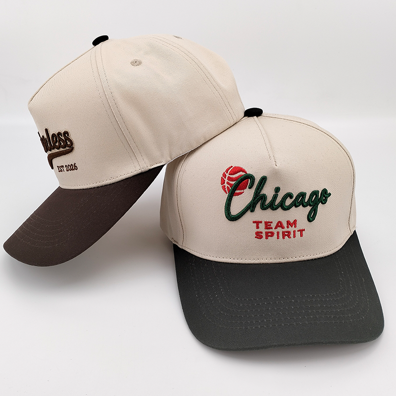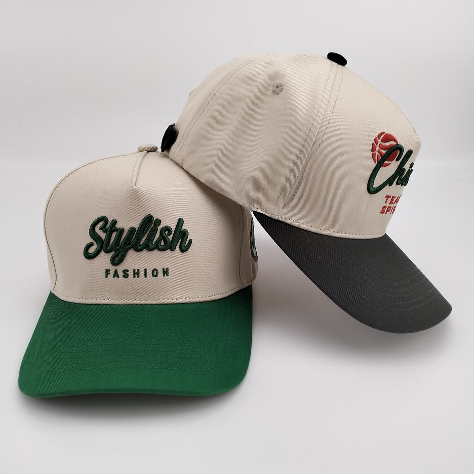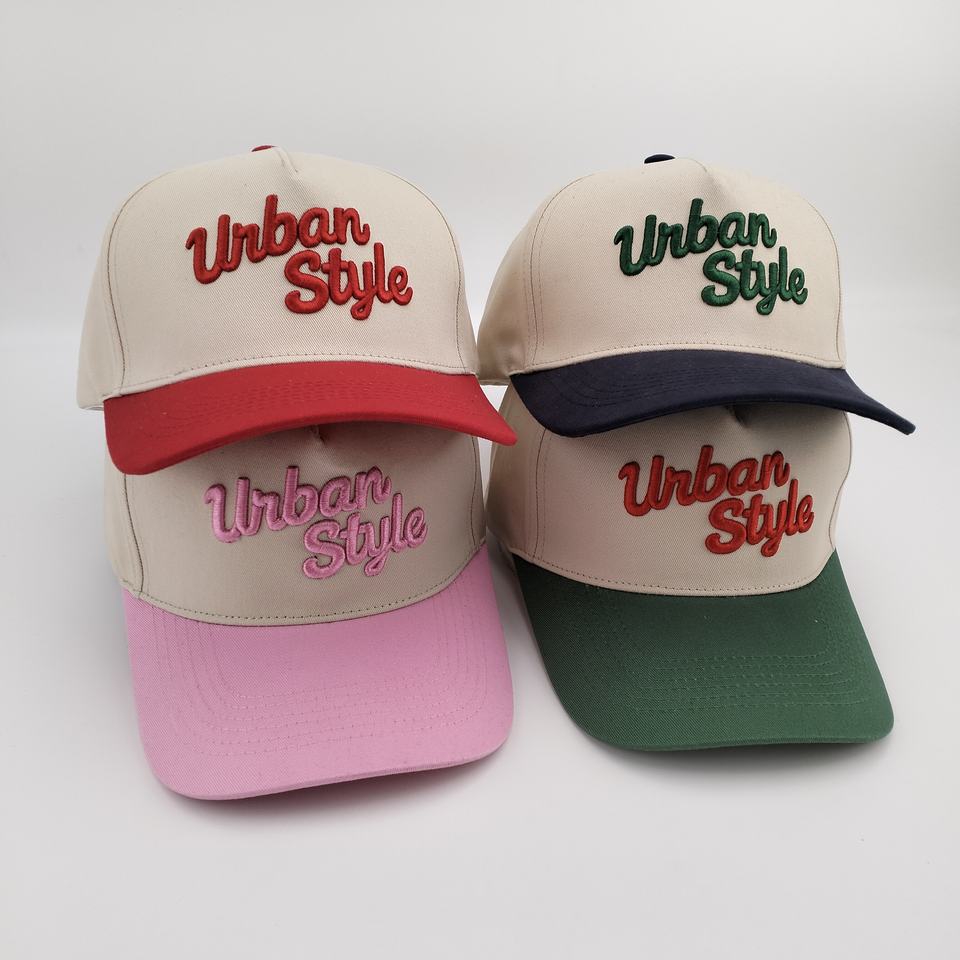 หมวกแก๊ปขายส่งแบบกำหนดเอง หมวกเบสบอล 5 ชิ้น ผ้าฝ้ายสองสี ปักโลโก้ 3 มิติ หมวกวินเทจสำหรับทุกเพศ หมวกแก๊ปแบบ Dad จำนวนมาก รับผลิตแบบ OEM