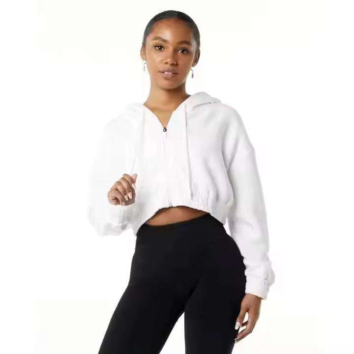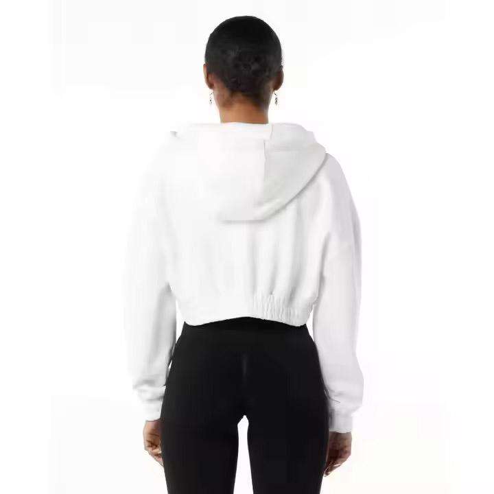 เสื้อสเวตเตอร์แบบสวมหัวของผู้หญิงเสื้อครอปมีฮู้ดเสื้อครอปสีเขียวออกแบบได้ตามต้องการสีน้ำตาลล้วน