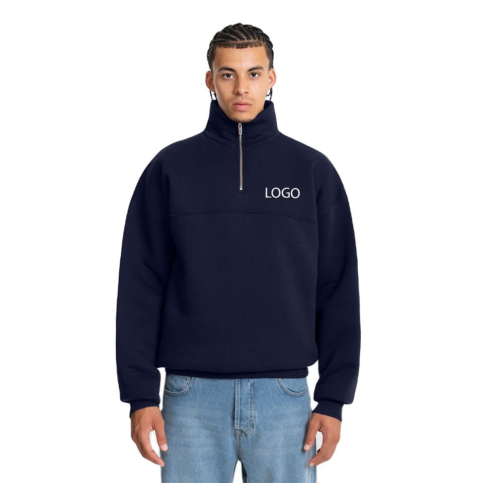เสื้อฮู้ดคอปกแบบลำลองของผู้ชายเสื้อกีฬาแบบสวมหัวมีซิปครึ่งแบบกำหนดเองผ้าฝ้าย100% ทันสมัย