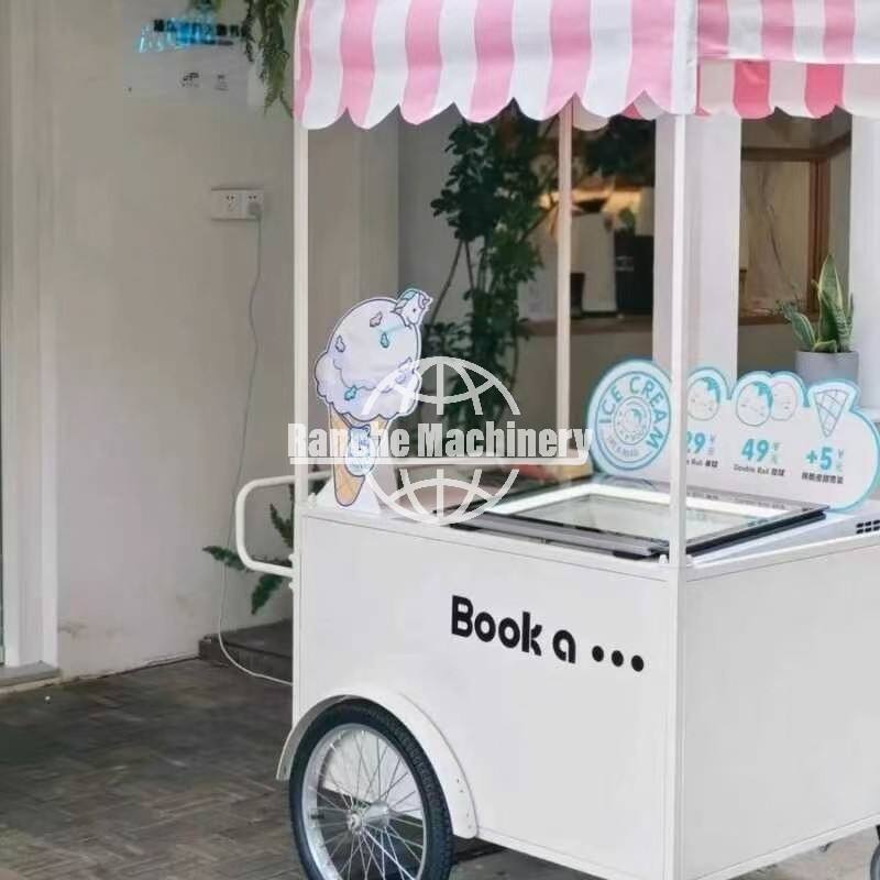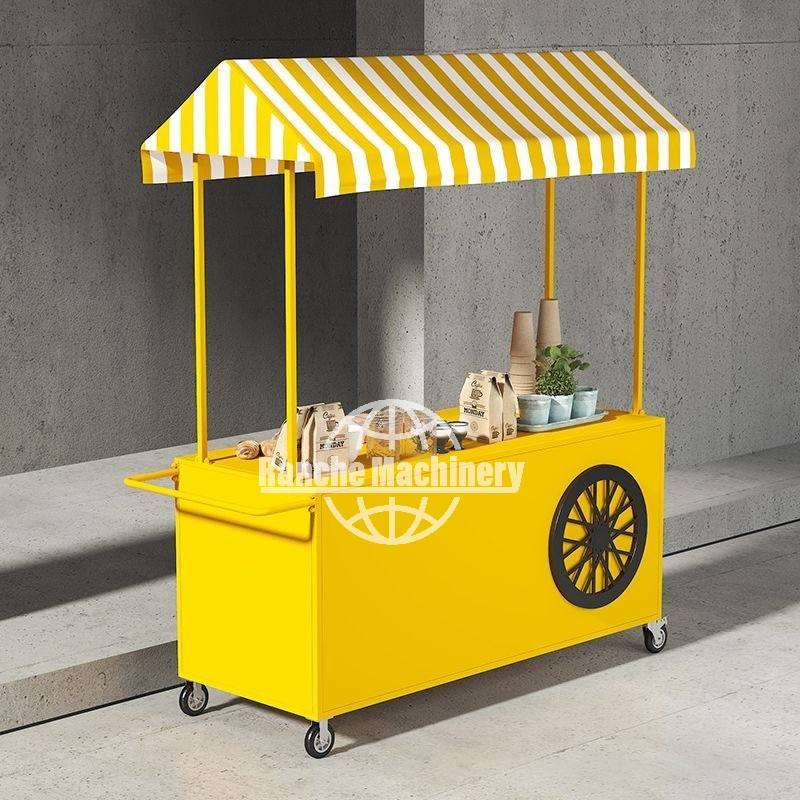 รถขายอาหารเคลื่อนที่สแตนเลสแบบผลักมือสั่งทำได้สำหรับใช้งานกลางแจ้ง-โรงแรม อาหารจานด่วน ฮอทดอก ไอศกรีม ดีไซน์กันสนิม