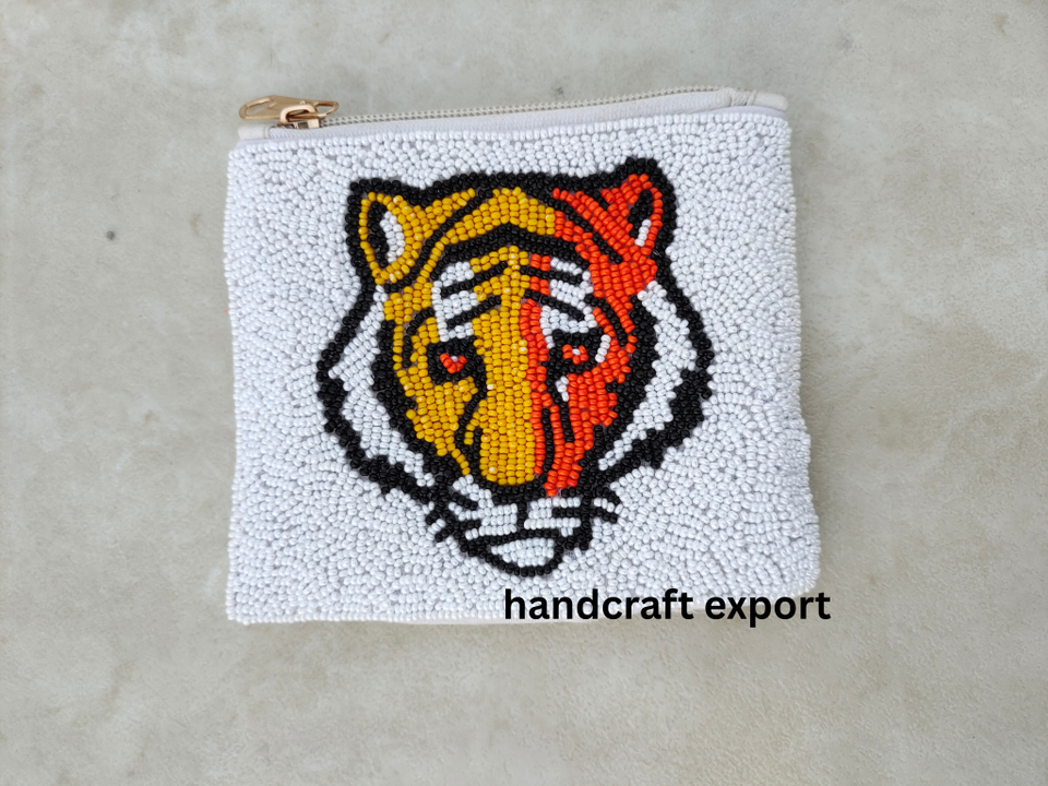 กระเป๋าใส่เหรียญปักลายเสือด้วยมือ ประดับด้วยลูกปัด ซิปปิดอย่างดี แข็งแรง เป็นมิตรกับสิ่งแวดล้อม ปลอดภัย พกพาสะดวก ทันสมัย สำหรับมืออาชีพและเกม
