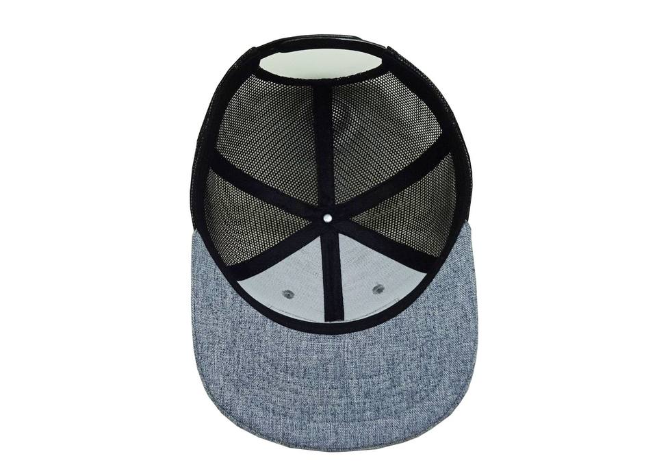 หมวกสแนปแบ็กตาข่ายสีเทาและสีดำปักโลโก้ปรับขนาดได้ทำจากเวียดนาม