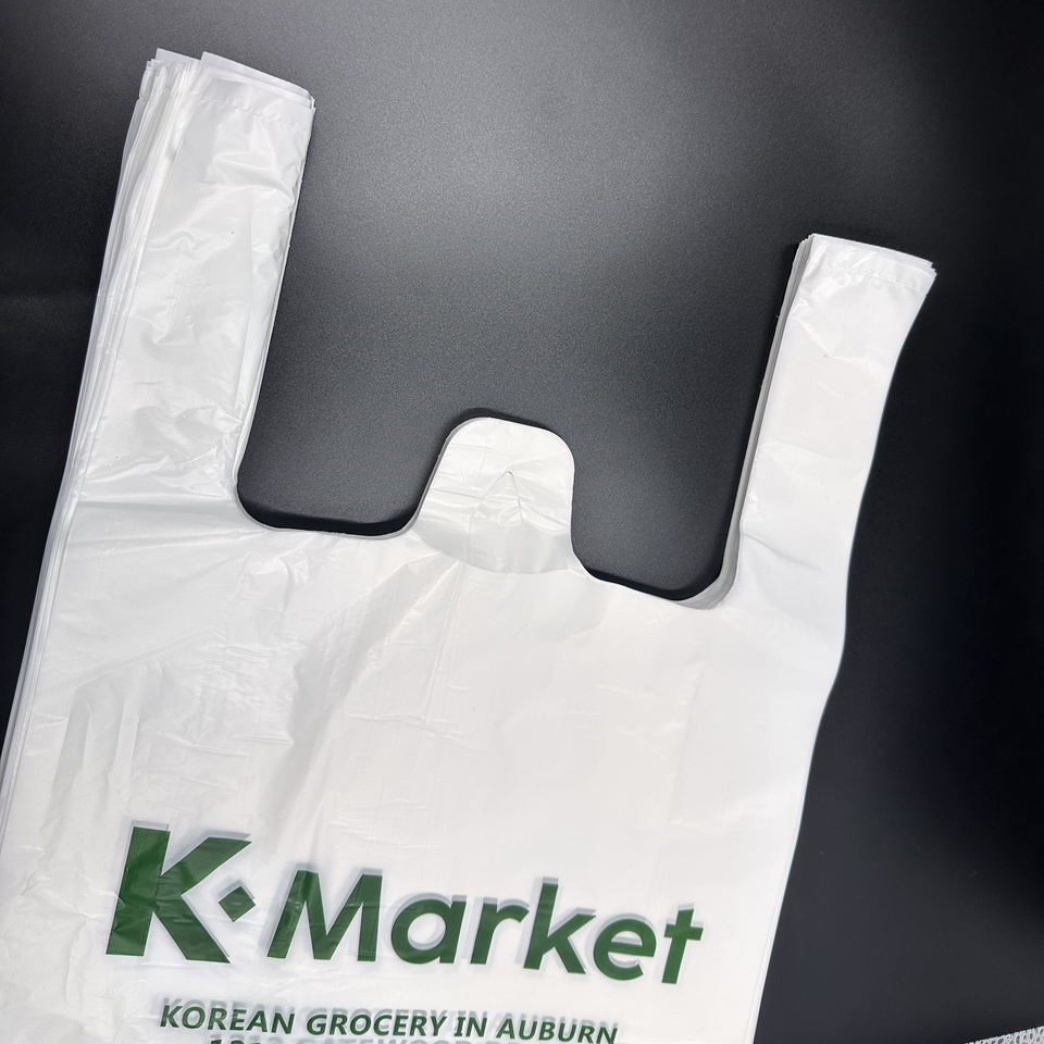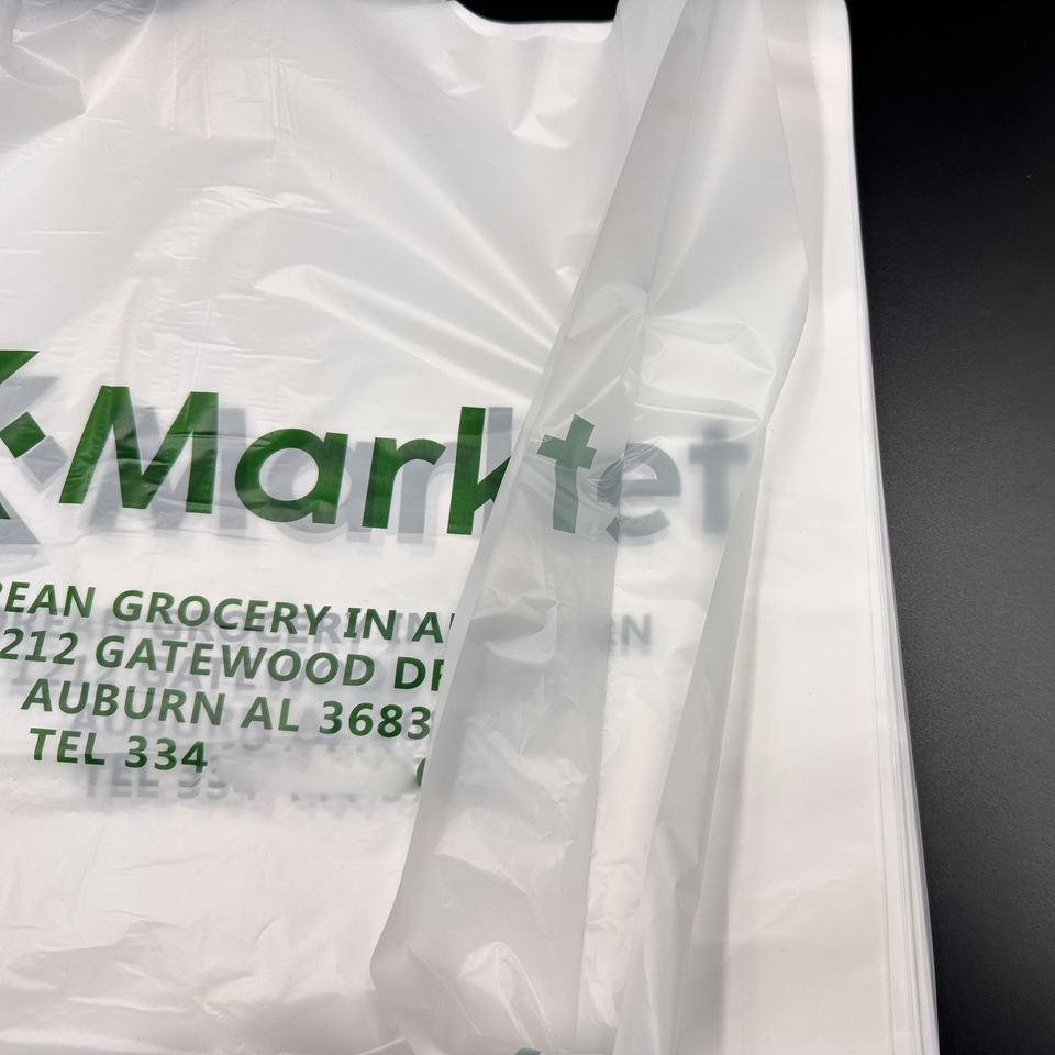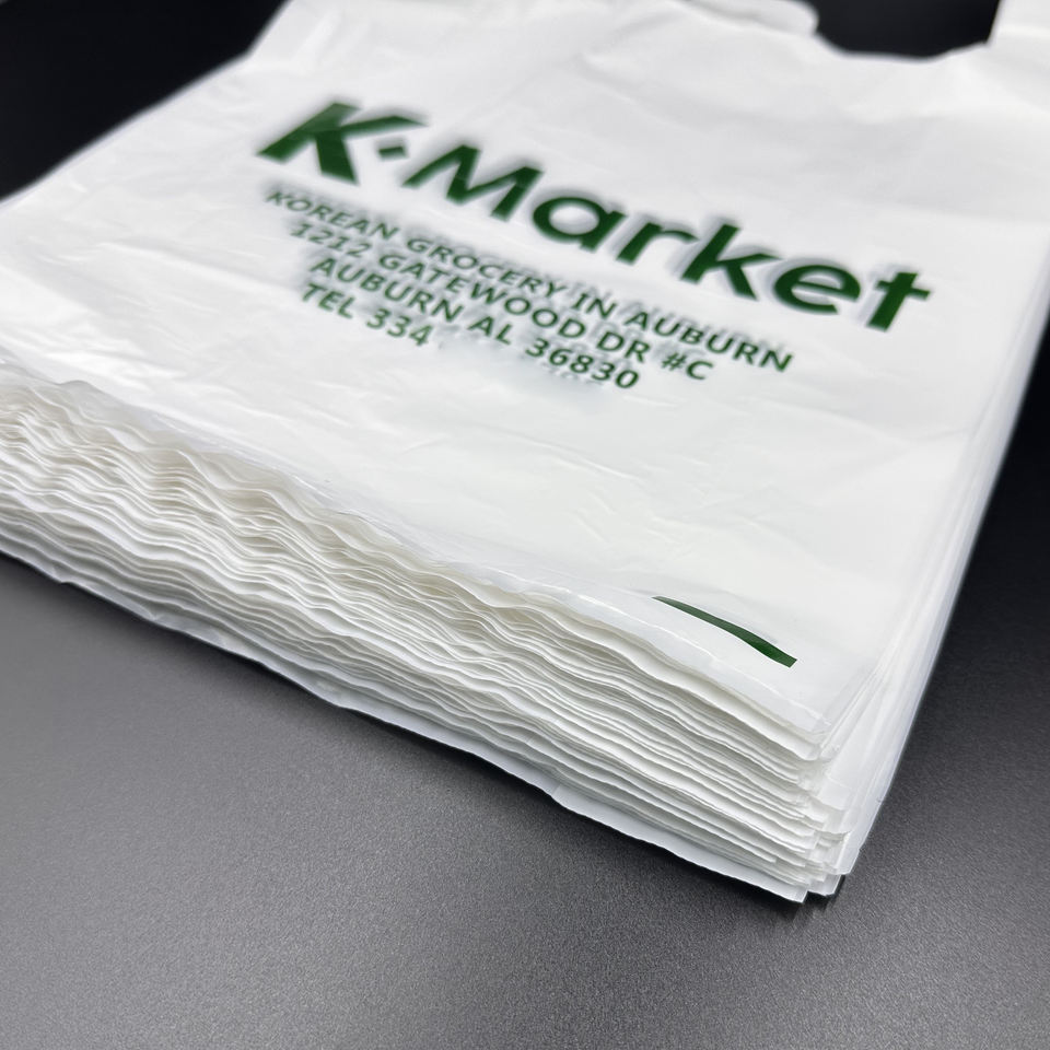 กระเป๋าใส่เสื้อยืดพิมพ์โลโก้สีเขียวสำหรับงานนิทรรศการงานตามสั่งสำหรับงานหนักซูเปอร์มาร์เก็ต