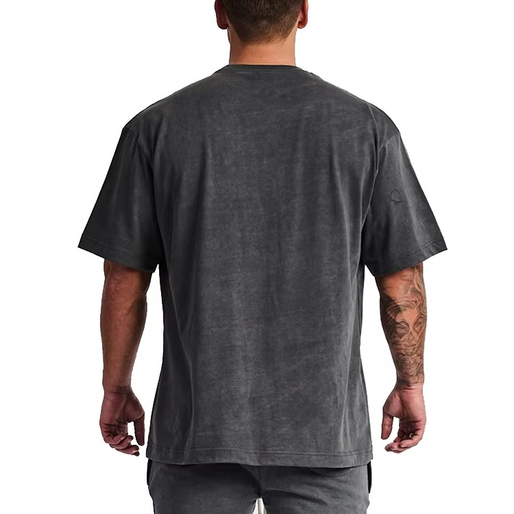 เสื้อยืดโอเวอร์ไซส์สั่งทำขายส่ง เนื้อผ้าหนา คอกลม ทรงวินเทจ สีดำล้วน สำหรับผู้ชาย