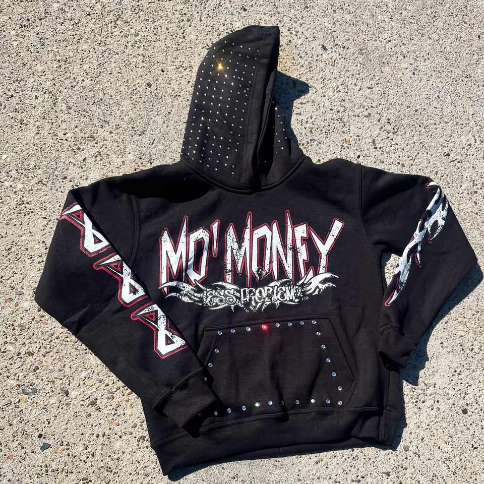 เสื้อฮู้ดดี้ทรงบ็อกซี่สำหรับฤดูหนาว ผ้าฟลีซเนื้อหนัก 100% ผ้าฝ้ายคุณภาพสูง ซักแบบสโตนวอช ตกแต่งด้วยคริสตัล รับผลิตตามสั่งขายส่ง บริการ OEM