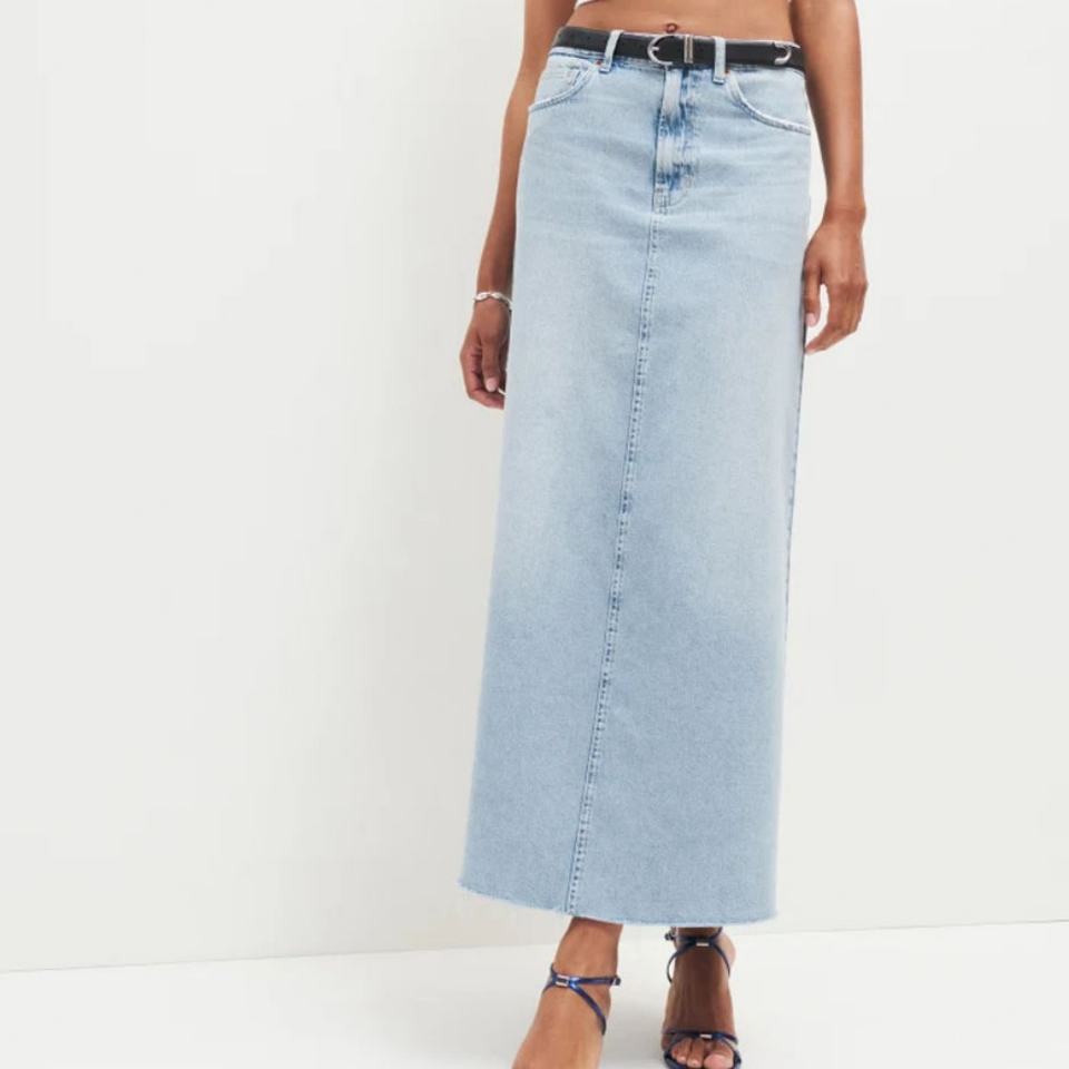 กระโปรงยีนส์แม็กซี่ทรงหลวมสีน้ำเงินฟอกแบบสั่งทำคุณภาพสูงสำหรับผู้หญิง เอวธรรมชาติ เนื้อผ้าระบายอากาศได้ดี