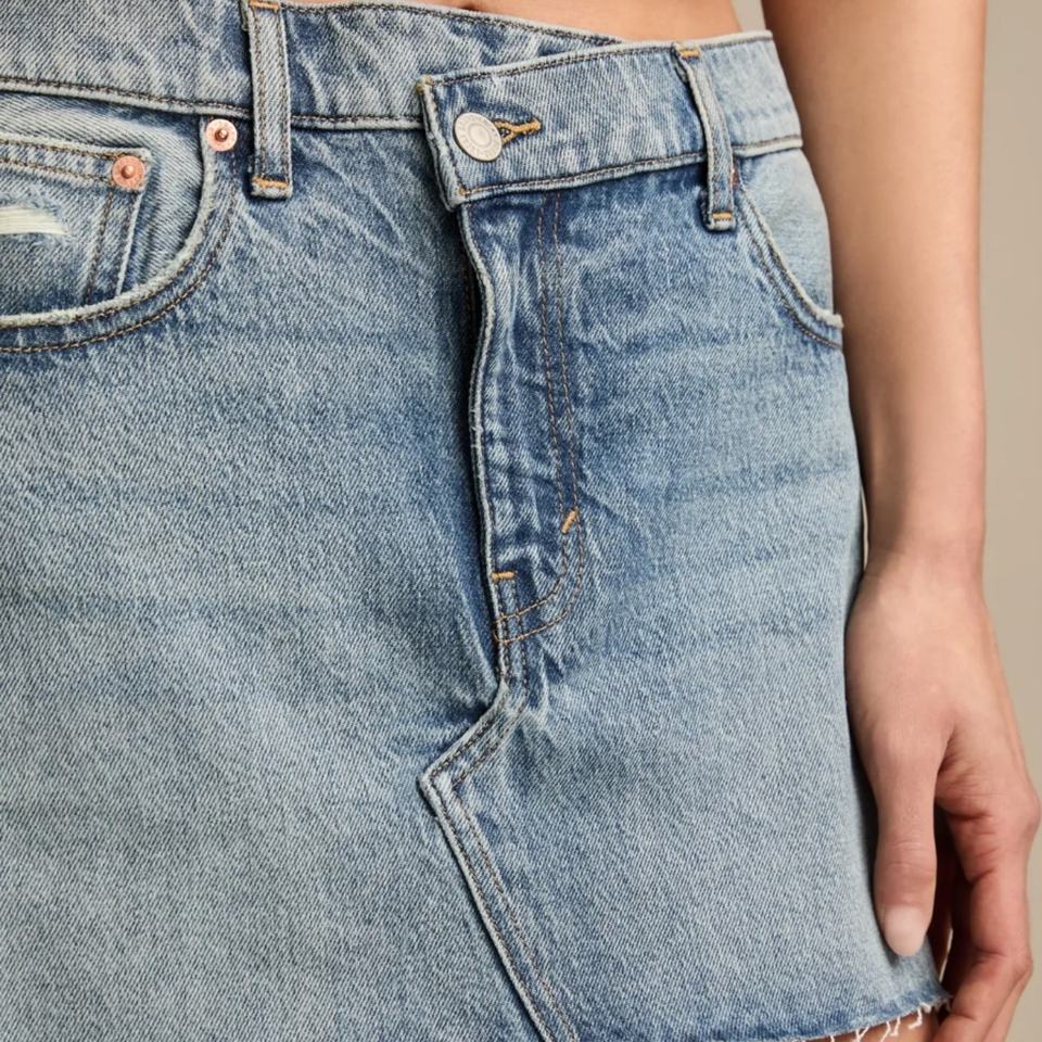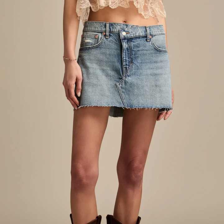 กระโปรงยีนส์คุณภาพสูงสั่งทำขายส่งสำหรับผู้หญิง สไตล์ลำลองสำหรับฤดูร้อน กระโปรงมินิเอวสูงมีกระเป๋า