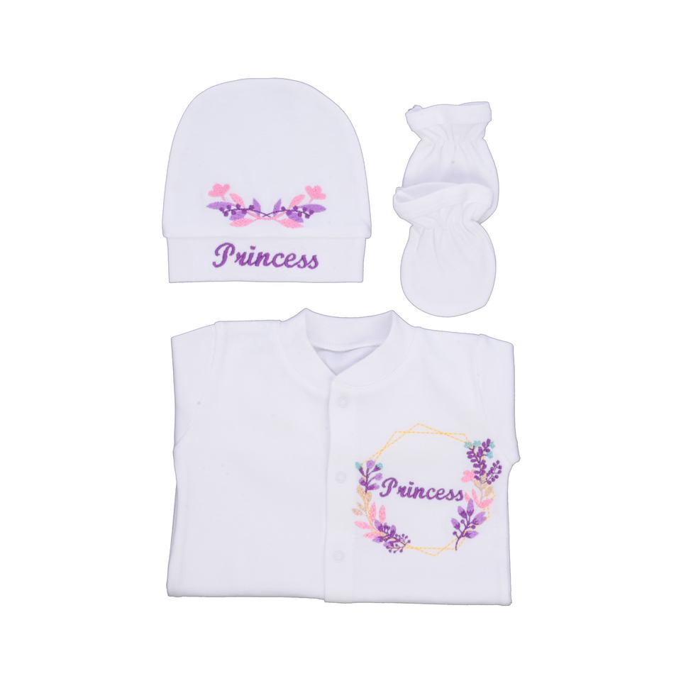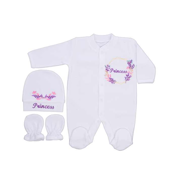 ชุดหมีทารกแรกเกิดเด็กผู้หญิงแขนยาวผ้าคอตตอนถัก3ชิ้น100% สีขาวดูหรูหราทันสมัย