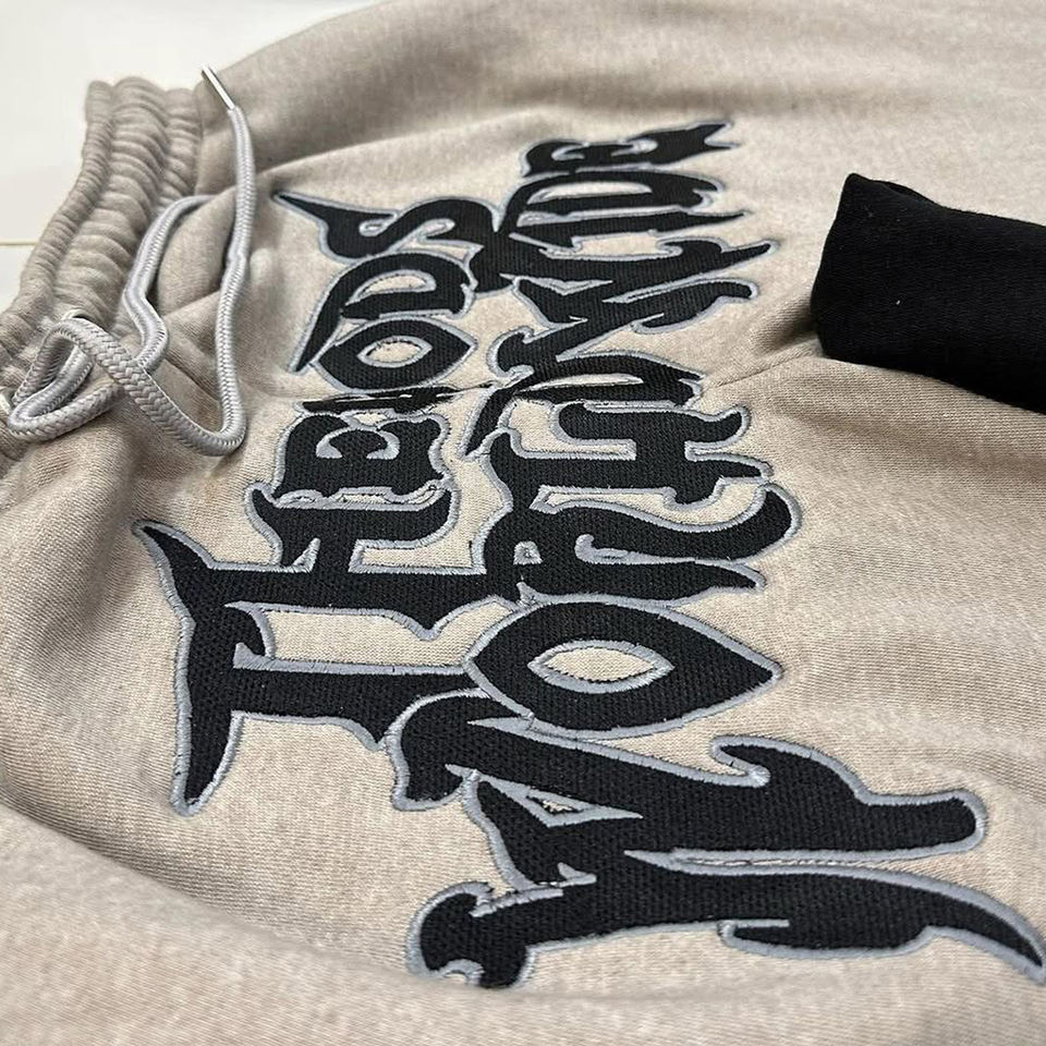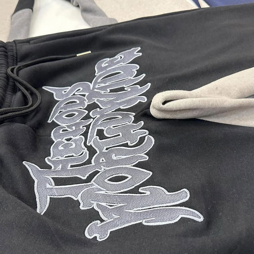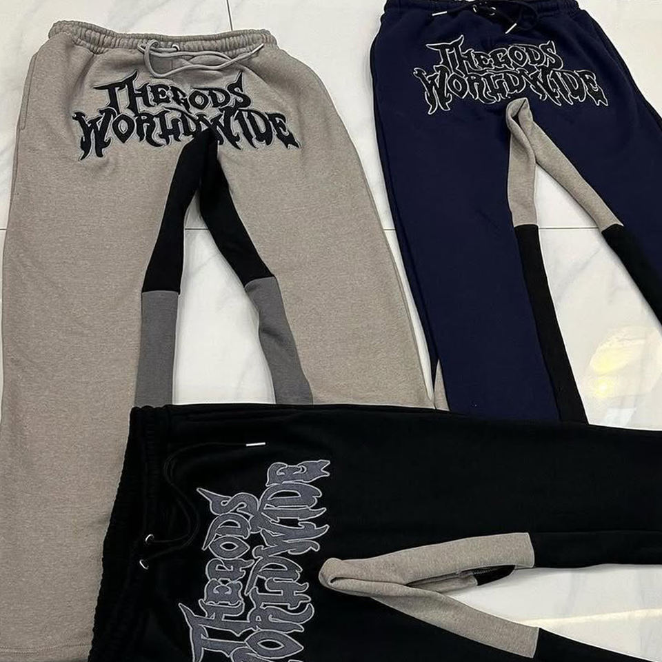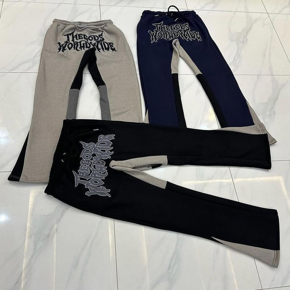 กางเกงขายาวทรงบานบุขนกำมะหยี่โพลีเอสเตอร์/คอตตอนคุณภาพสูงสั่งทำขายส่ง สไตล์สตรีทสำหรับผู้ชาย ปักลาย เอวยางยืด แห้งเร็ว