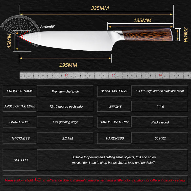 มีดเชฟสุดคมพิเศษมีดทำครัวทำจากสเตนเลสคาร์บอนสูงด้ามจับไม้