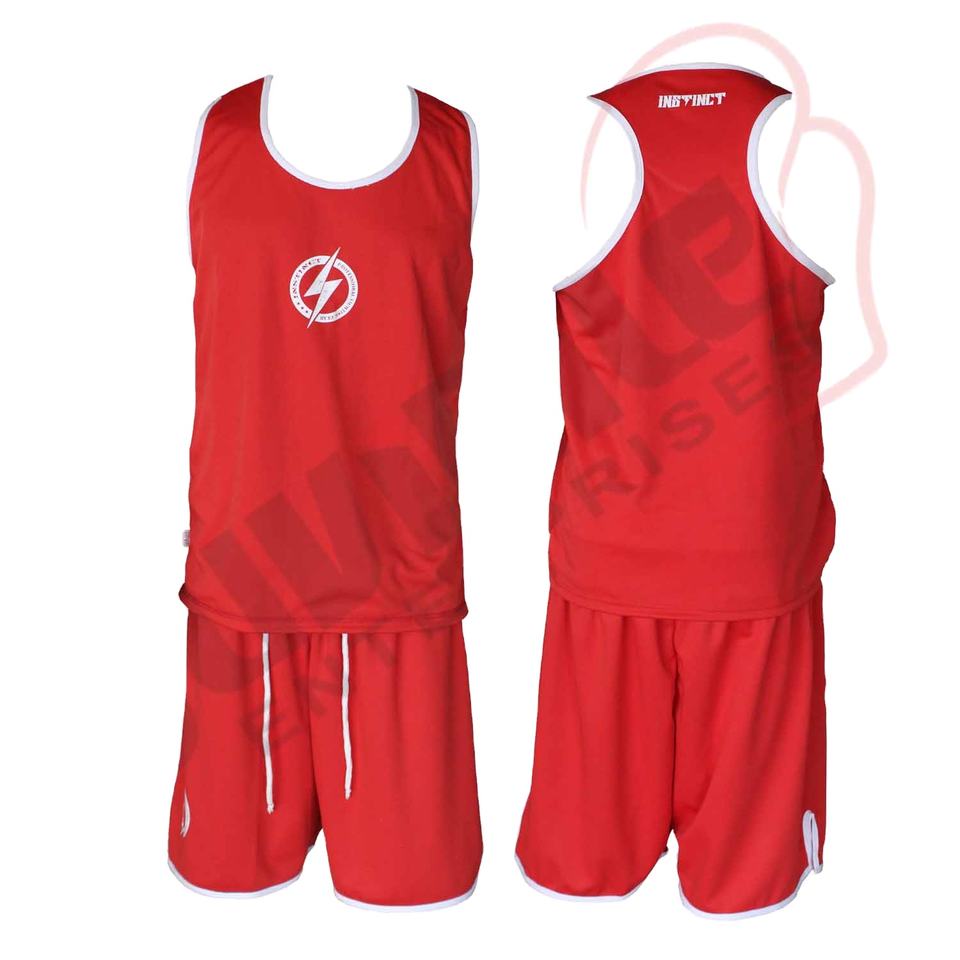 ชุดชกมวยแข่งขันสีแดงแบบย้อนกลับได้ คุณภาพสูง ผลิตตามสั่ง ขายส่ง ระบายอากาศด้านหน้าได้ดี น้ำหนักเบา ทนทาน ยืดหยุ่น