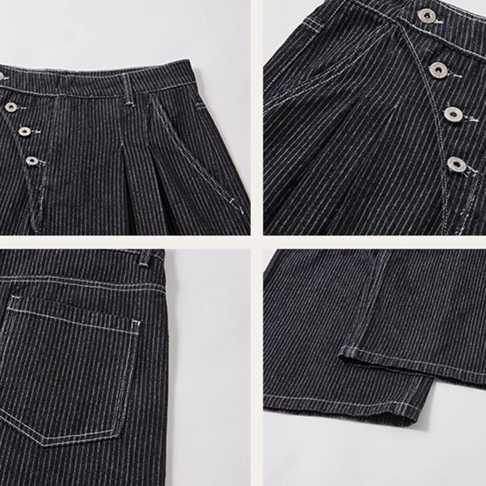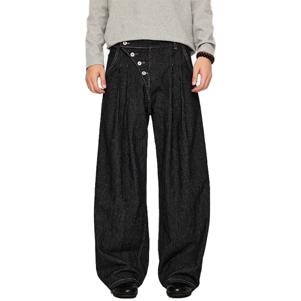 กางเกงยีนส์ผู้ชายขายส่งแบบสั่งทำพิเศษ ลายทางสไตล์ไฮสตรีท ทรงขากว้าง โอเวอร์ไซส์ สีดำและสีขาวลายทาง กางเกงยีนส์ทรงหลวมสำหรับผู้ชาย