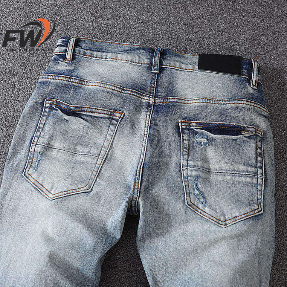 กางเกงยีนส์เดนิมทรงตรงหลวมสไตล์เรโทรแบบสตรีทแฟชั่นสั่งทำขายส่งสำหรับผู้ชาย ผ้าฝ้ายเดนิมฟอกสีอ่อน