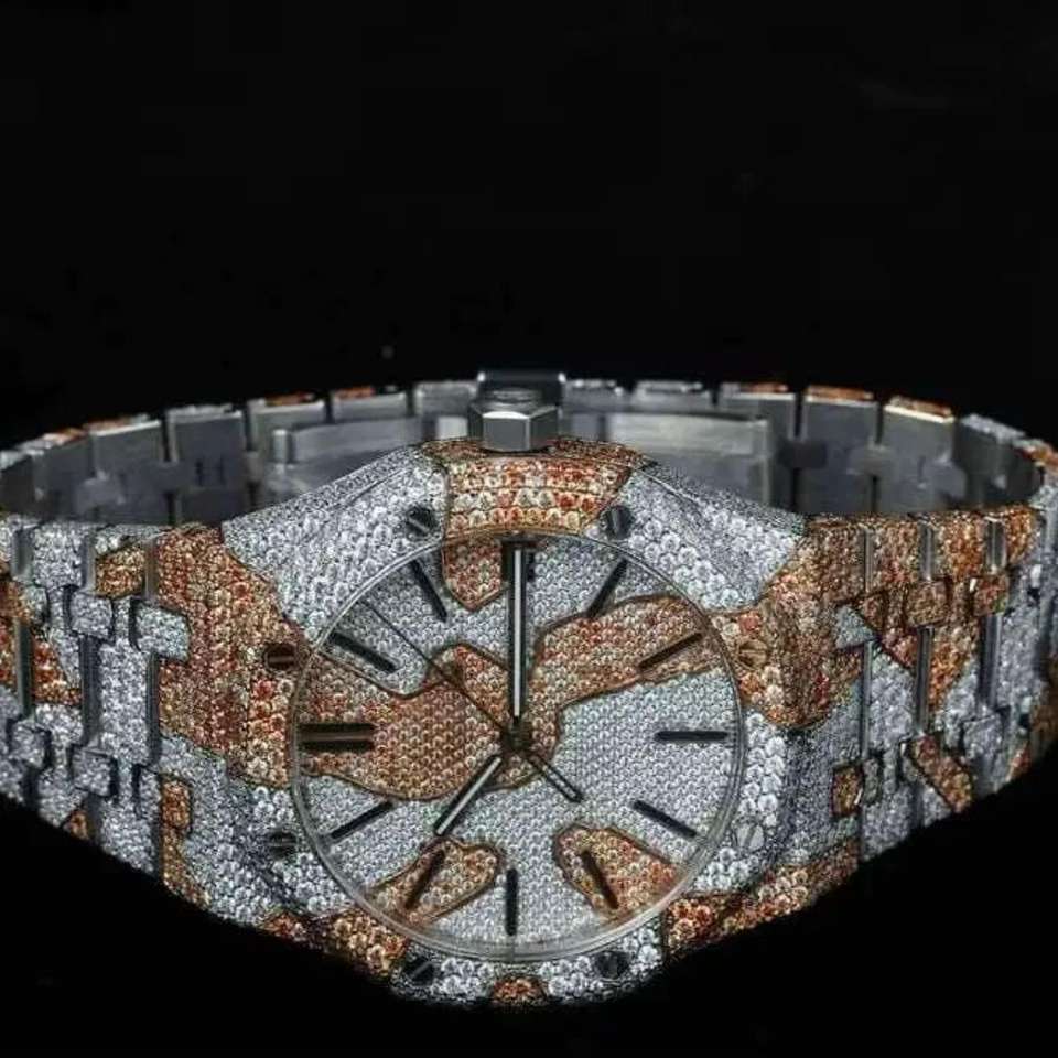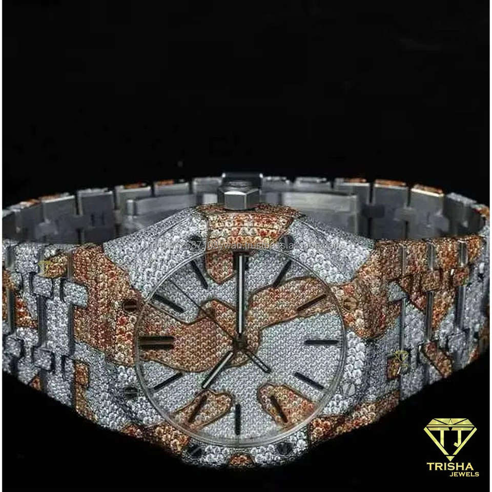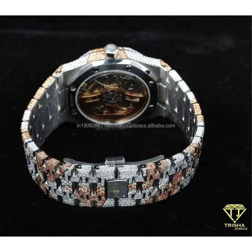นาฬิกาข้อมือผู้ชายสแตนเลสสตีลแบบฮิปฮอปสองสีประดับเพชรโมอิสซาไนต์ VVS แบบสั่งทำขายส่ง