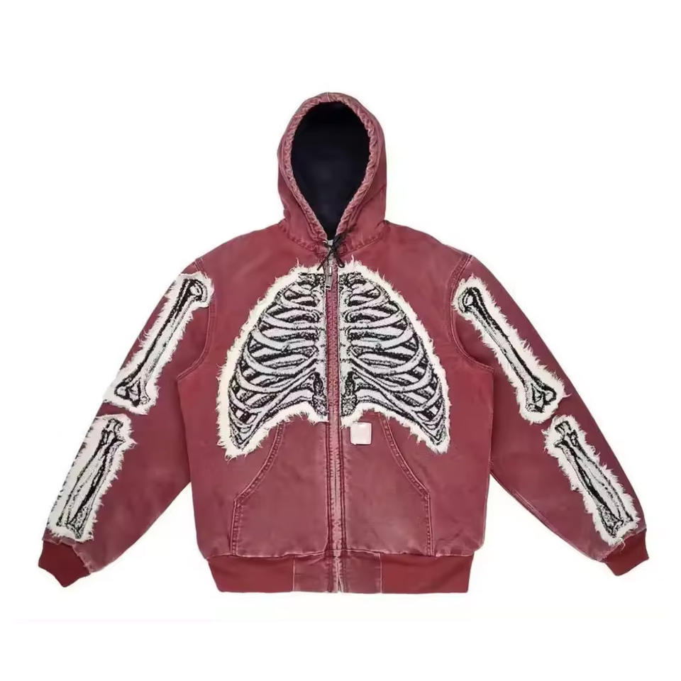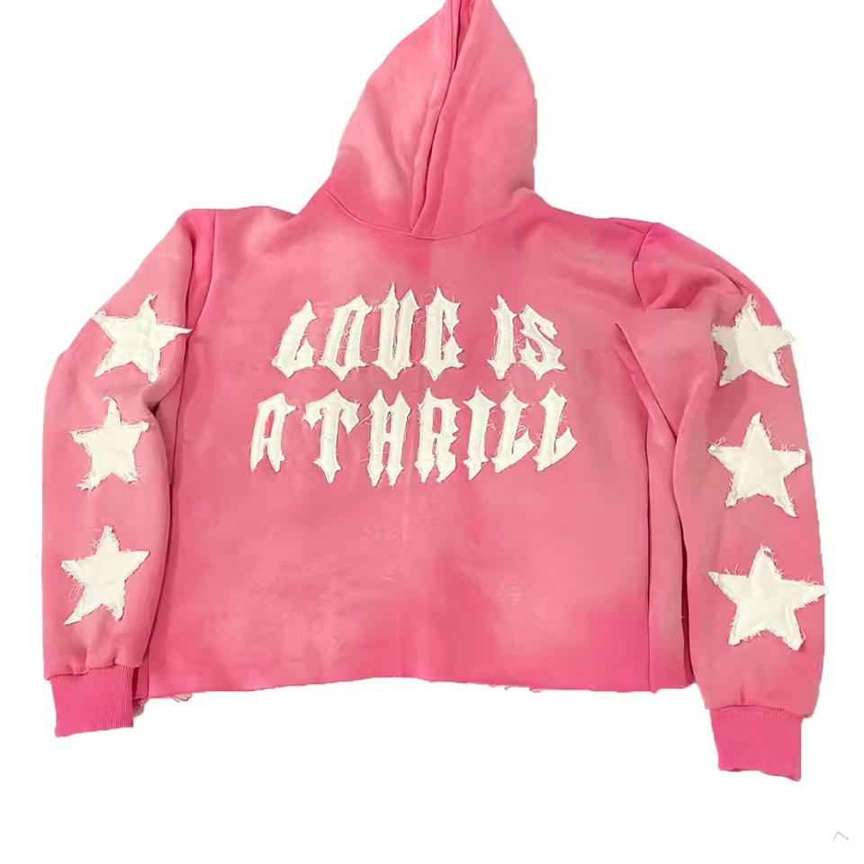 Wholesale Custom Hoodie Oversize 100% Cotton Fleece ZipUp Hoodie Distressed Patch Applique Embroidery Logo Sunfade Hoodie Unisex