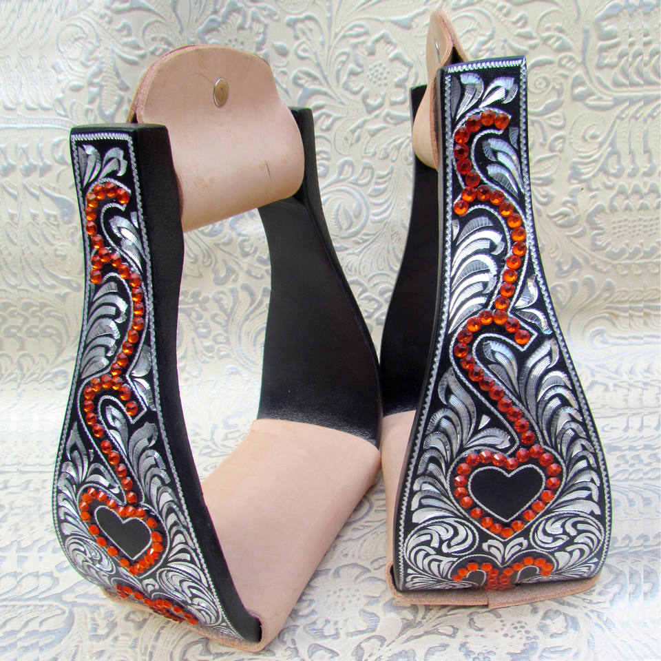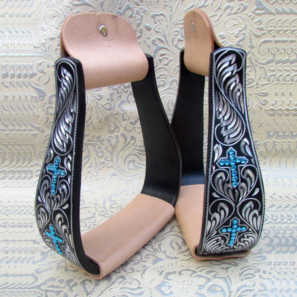 โกลนแบบกระบอกสำหรับขี่ม้าแบบตะวันตกสลักลายอลูมิเนียม