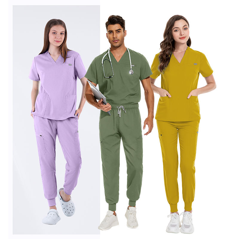 ชุดสครับสำหรับนักวิ่งเครื่องแบบโรงพยาบาลพร้อมโลโก้สวมใส่สบายและทนทานสำหรับผู้เชี่ยวชาญด้านสุขภาพ