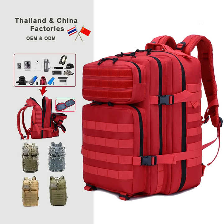 กระเป๋าเป้สะพายหลังแนวยุทธวิธีของ45L กระเป๋ายิมสีแดงกันน้ำแบบจู่โจม900D 1-3วัน