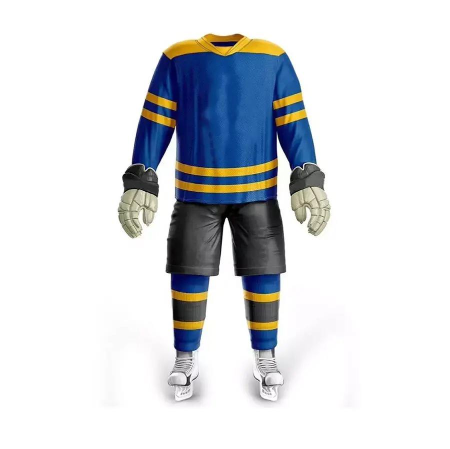 ชุดฮอกกี้น้ำแข็งสั่งทำขายส่ง คุณภาพดีที่สุด ดีไซน์ใหม่ ชุดยูนิฟอร์มปรับแต่งได้เต็มรูปแบบ พร้อมชื่อทีมแบบ OEM