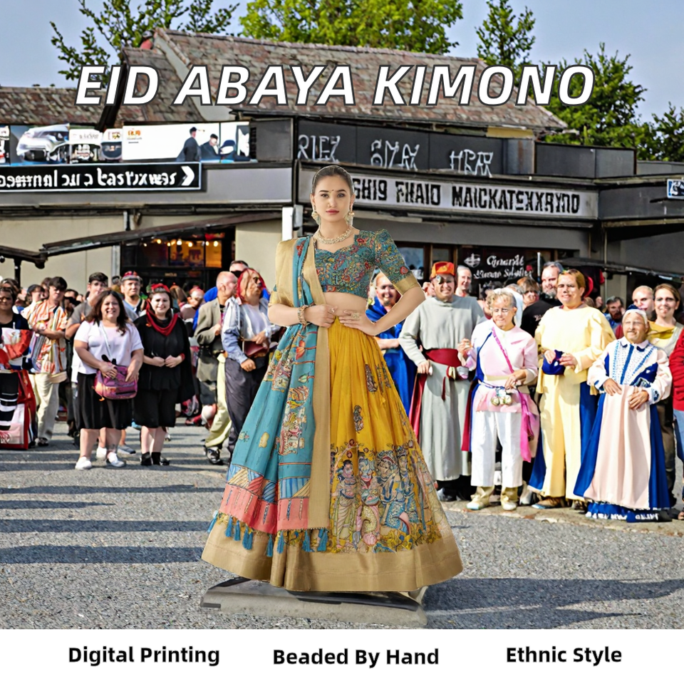ชุดกิโมโนสำหรับผู้หญิงชุดเดรสมุสลิมพิมพ์ลายดิจิตอลทำด้วยมือลูกปัดเปิดทำจากโพลีเอสเตอร์