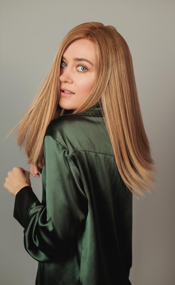 วิกผมสีน้ำตาลธรรมชาติดูผ่านบางส่วนเรียบแสกบาง (WFHXFR3)