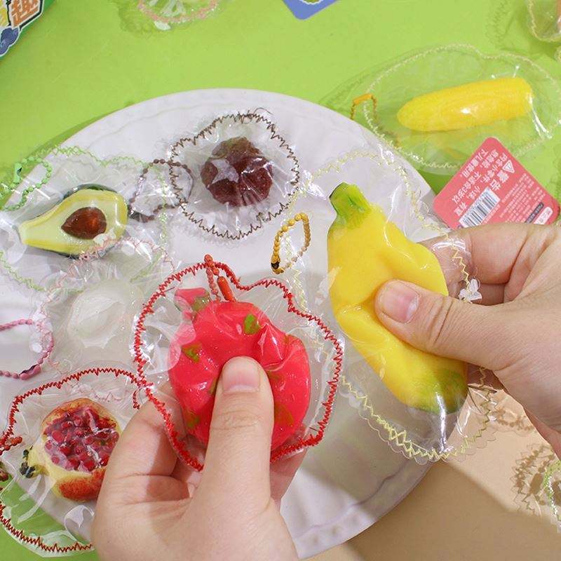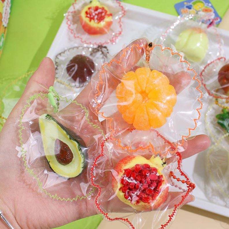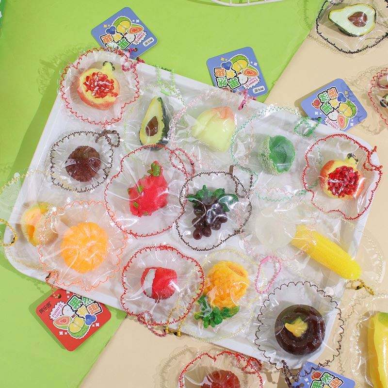 ขายส่งของเล่นบีบสควิชชี่รูปผลไม้สีสันสดใสแบบกำหนดเอง จี้ห้อยกระเป๋า มะม่วง ส้ม ของเล่นคลายเครียด สำหรับทุกเพศ วัสดุ TPR