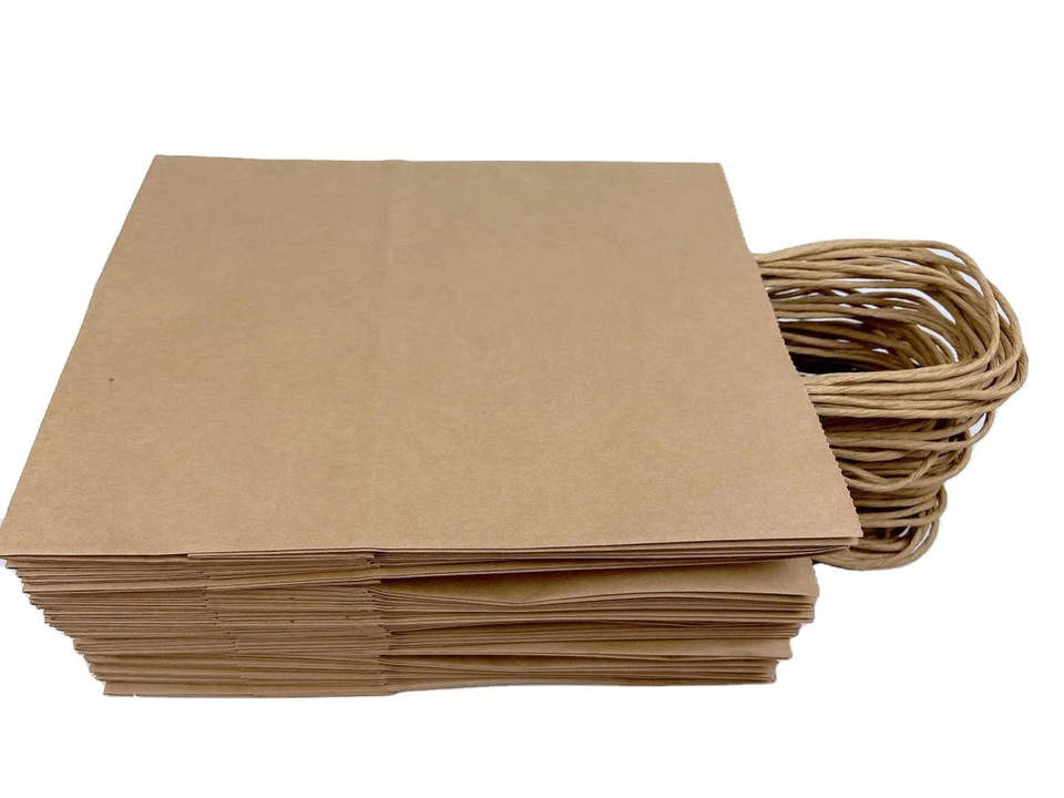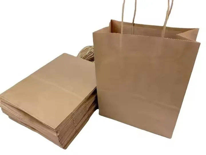 ถุงกระดาษคราฟท์แบบกำหนดเองขายส่ง เป็นมิตรกับสิ่งแวดล้อม พร้อมเคลือบและหูหิ้ว สำหรับบรรจุภัณฑ์อาหารซื้อกลับบ้านจากซูเปอร์มาร์เก็ต