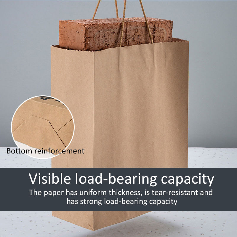 ถุงช้อปปิ้งกระดาษคราฟท์สีน้ำตาลสำหรับร้านขายของชำเป็นมิตรกับสิ่งแวดล้อม