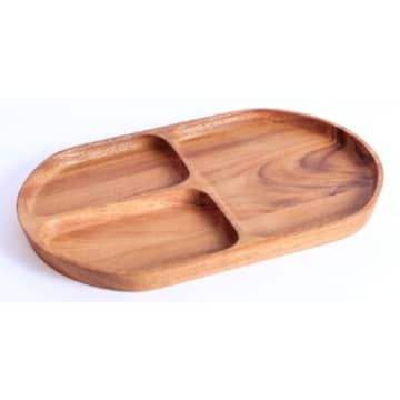 ถาดไม้วอลนัททรงกลมสีน้ำตาลชนบทขนาดเล็กออกแบบได้ตามที่ต้องการถาดใส่อาหารพร้อมที่จับถาดใส่สาร์ธรรมชาติ