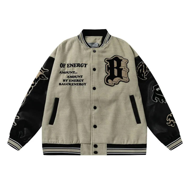 แจ็คเก็ตหนังวัวแท้แบบสั่งทำขายส่งสำหรับผู้ชาย สไตล์ไฮสตรีท คอตั้ง ปักลาย พร้อมคุณสมบัติให้ความอบอุ่น