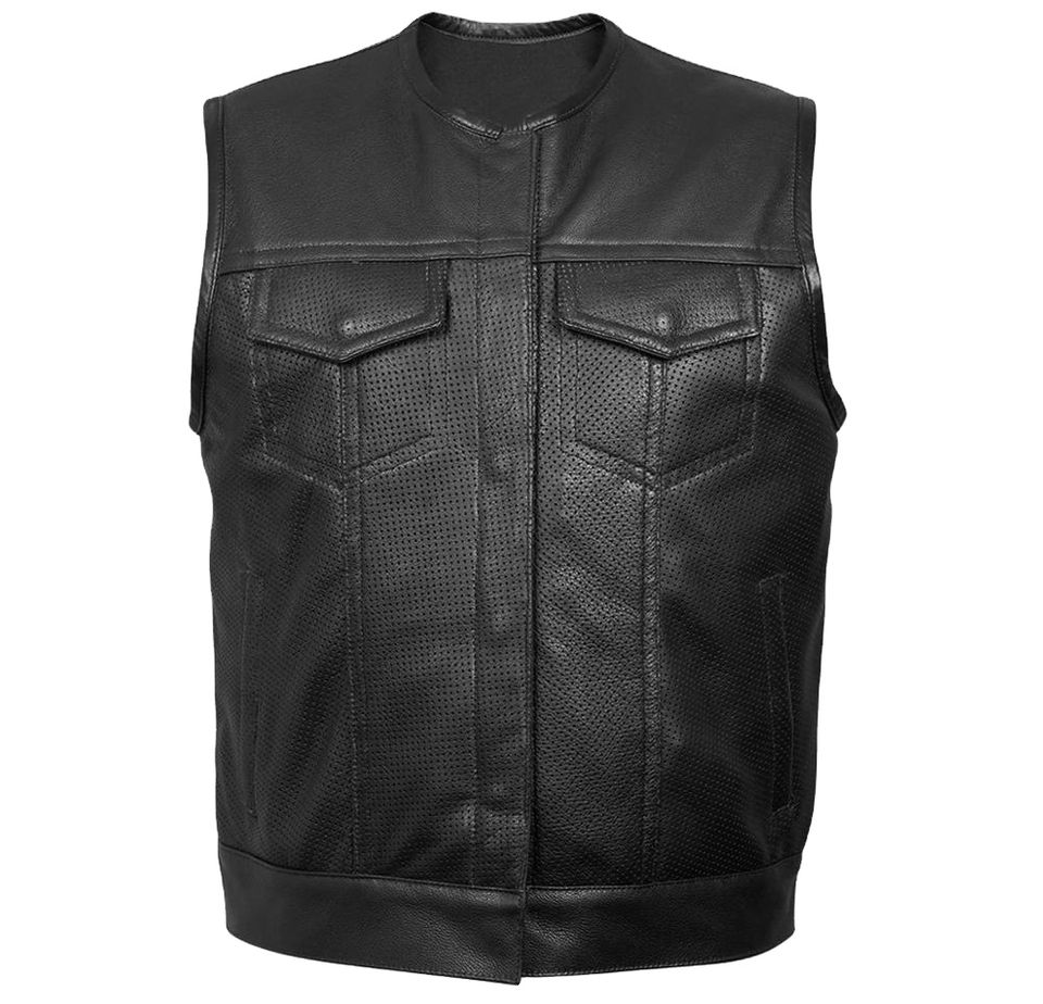 เสื้อกั๊กหนังแท้สั่งทำขายส่งสำหรับผู้ชาย สไตล์คลาสสิก ไม่มีแขน สำหรับขี่มอเตอร์ไซค์ ทำจากหนังแท้