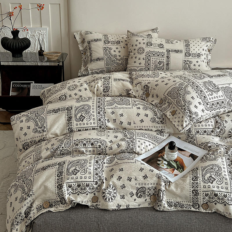 ชุดเครื่องนอน4ชิ้นผ้าลินินนุ่มสบายสุดชิคนุ่มสบายออกแบบได้ตามต้องการ