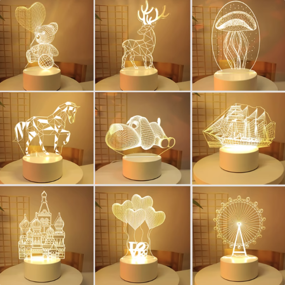 โคมไฟอะคริลิคสำหรับกลางคืนพร้อมรีโมทปรับแต่ง3D โลโก้ได้ตามต้องการ