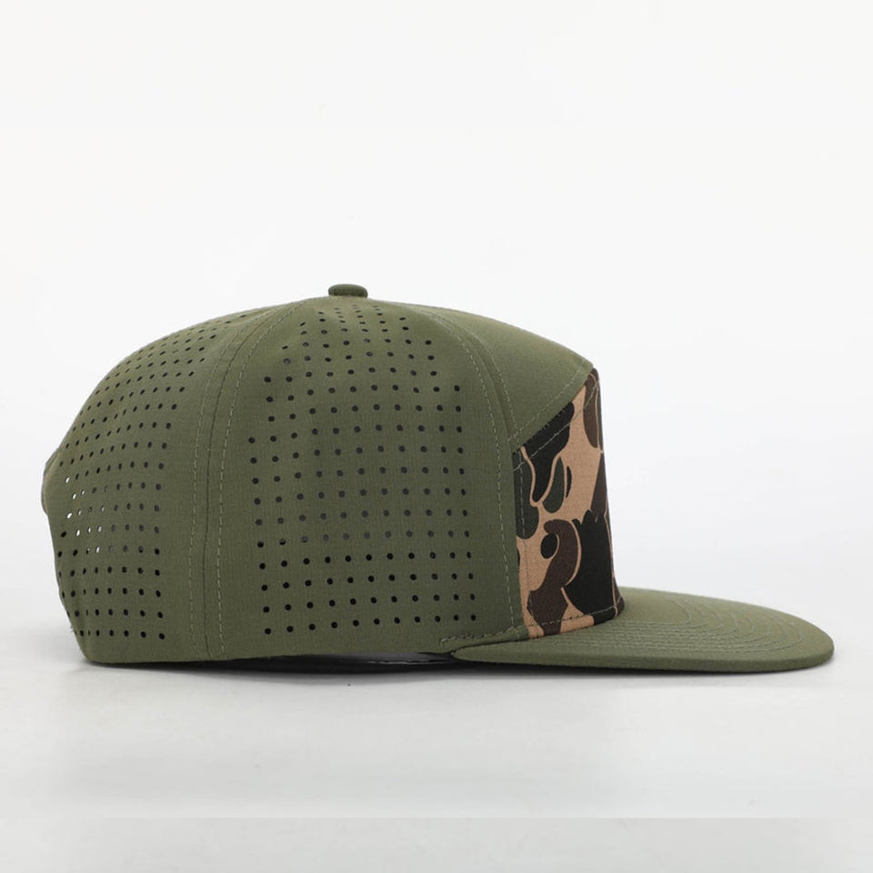 หมวกแก๊ปเบสบอลแบบสแนปแบ็คกันน้ำ 6 แผง ปักโลโก้ตามสั่ง ขายส่ง ลายการ์ตูนแบบเจาะรู ทรงลึก ตัดด้วยเลเซอร์