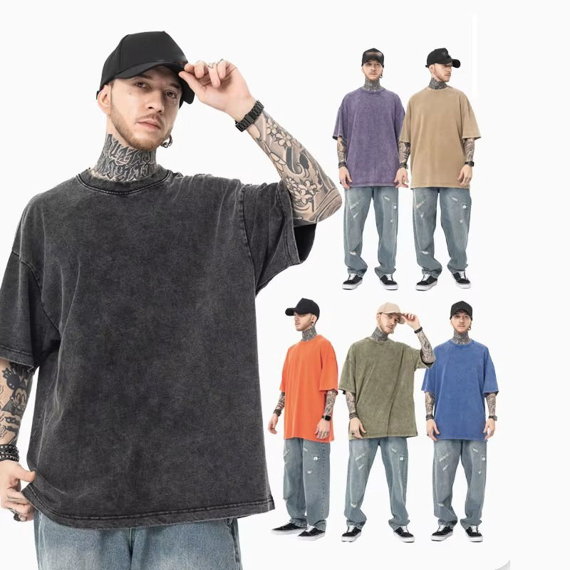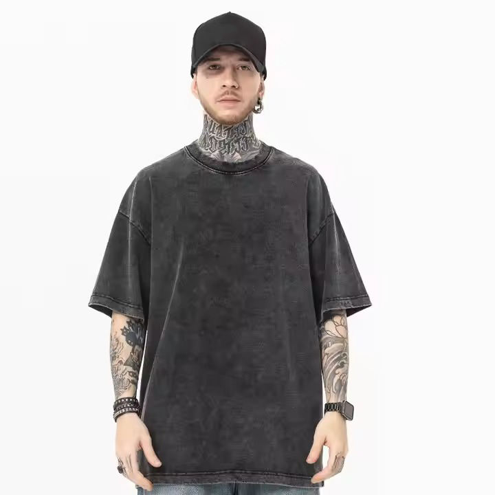 เสื้อยืดผู้ชายทรงหลวมโอเวอร์ไซส์สีเทาพิมพ์ลายกราฟิกผ้าถักระบายอากาศสไตล์วินเทจคอกลม 100% รับผลิตตามสั่งพร้อมสกรีนโลโก้