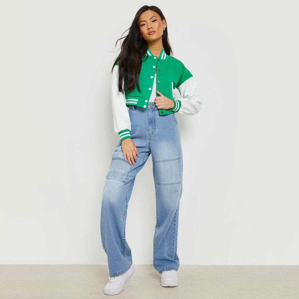 เสื้อแจ็กเก็ตเบสบอลครอปสำหรับผู้หญิง