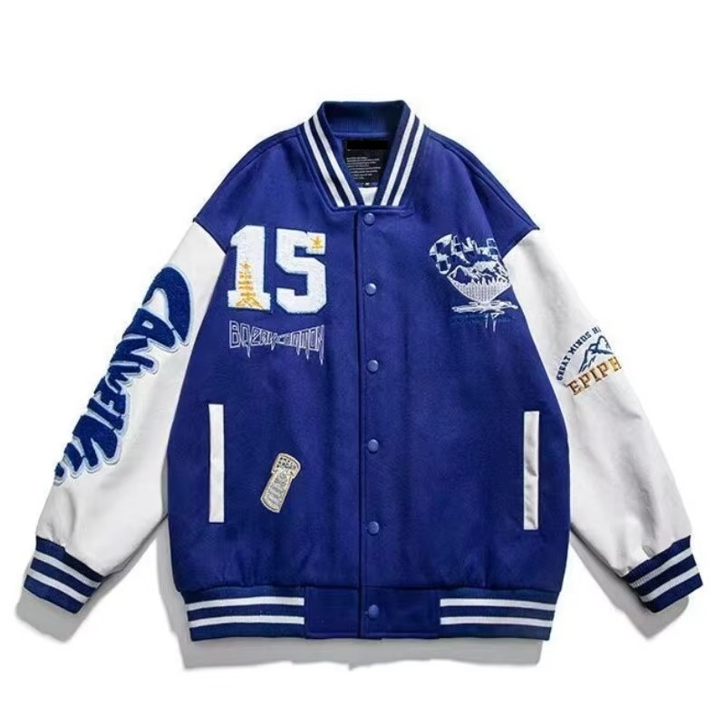 Wholesale Custom Logo Chenille Fashion Embroidery Leather Sleeve Vintage Baseball Coats Letterman Varsity Men's Jackets