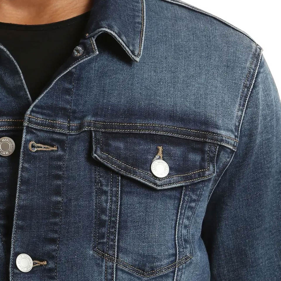 แจ็คเก็ตยีนส์ผู้ชายผ้าฝ้ายสั่งทำโลโก้ขายส่ง ระบายอากาศได้ดี เหมาะสำหรับกิจกรรมกลางแจ้ง