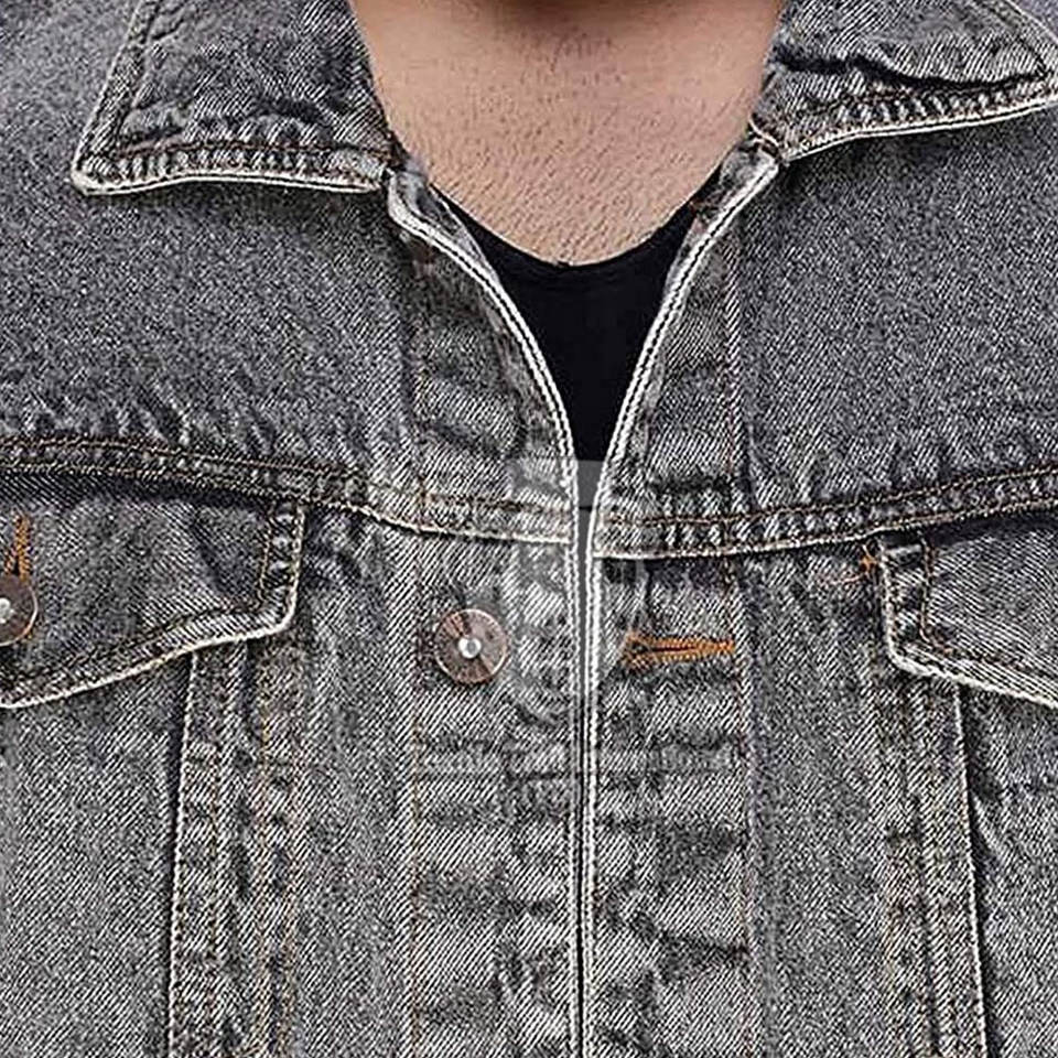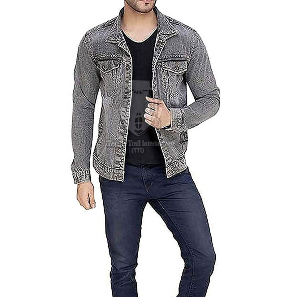 แจ็คเก็ตยีนส์ผู้ชายผ้าฝ้ายสั่งทำโลโก้ขายส่ง ระบายอากาศได้ดี เหมาะสำหรับกิจกรรมกลางแจ้ง